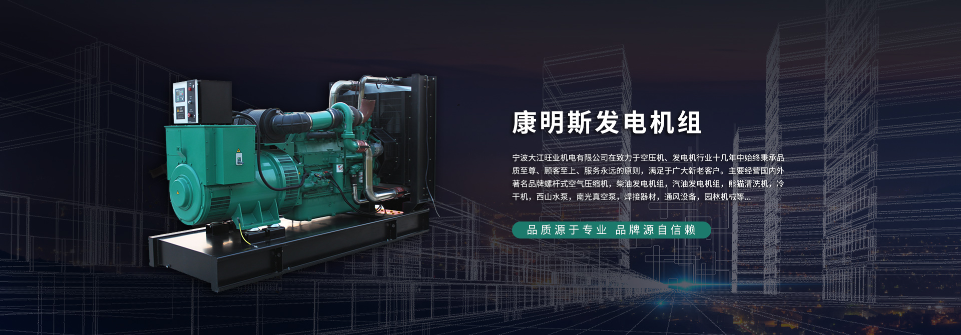 公司一直致力于柴油發(fā)電機(jī)組、汽油發(fā)電機(jī)組、空壓機(jī)、水泵、清洗機(jī)、焊接設(shè)備、園林機(jī)械、建筑機(jī)械等研發(fā)、銷售、出租租賃、安裝調(diào)試、售后維修保養(yǎng)等技術(shù)服務(wù),先后與本田、雅馬哈、大江、釜瑪、熊貓、奧利等等行業(yè)代表性品牌建立戰(zhàn)略合作伙伴關(guān)系。銷售網(wǎng)點(diǎn)立足于浙江,輻射全國(guó)及海外市場(chǎng),建立了線上線下全域式營(yíng)銷系統(tǒng)(線上平臺(tái)如阿里巴巴、淘寶、微信商城等,線下市場(chǎng)如恒大建材五金市場(chǎng)、眾冠商業(yè)廣場(chǎng),瑞豐商博城、未來(lái)萬(wàn)家等),客戶遍及工業(yè)、農(nóng)業(yè)、電信、移動(dòng)、金融、證券、電力、水利、部隊(duì)、工礦、機(jī)場(chǎng)、公路、航海、碼頭、酒店、醫(yī)院及各大院校等領(lǐng)域。